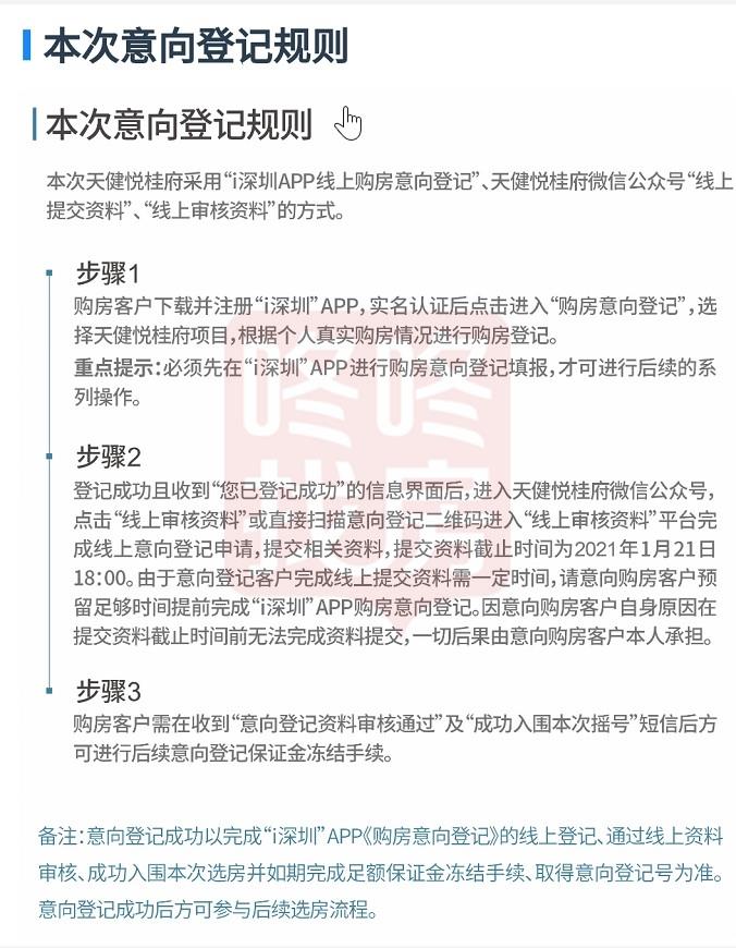 天健悦桂府将于今天起启动登记,在i深圳APP上进行购房意向登记,提交资料截止时间为1月21日18:00。