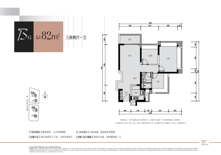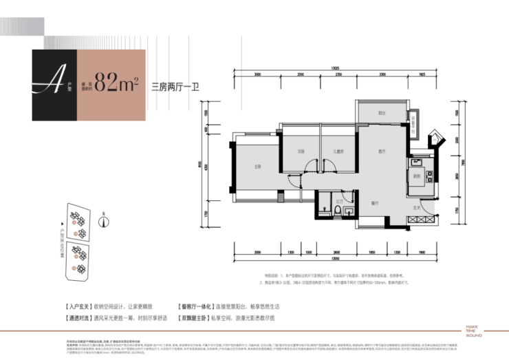 产品户型面积段约为:82㎡ 3房1卫、89㎡ 3房2卫、108㎡ 4房2卫户型,为3梯6设计,共计约1543套住宅,毛坯限价4.89万/㎡。
