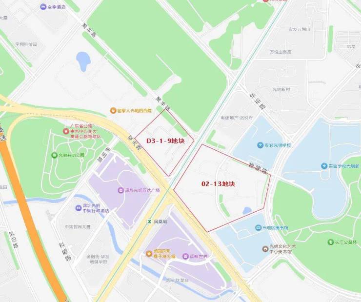 这两块地紧挨着6/13号线双线换乘的凤凰城地铁站,周边分布有光明万达广场、蓝鲸世界等大型商业;光明区图书馆、展览馆、美术馆等文体配套;以及深圳实验光明学校(九年一贯制)和深圳实验学校光明部(高中)。