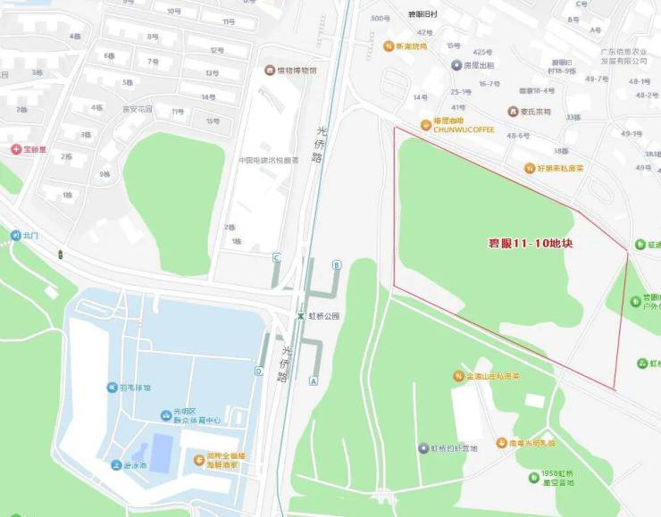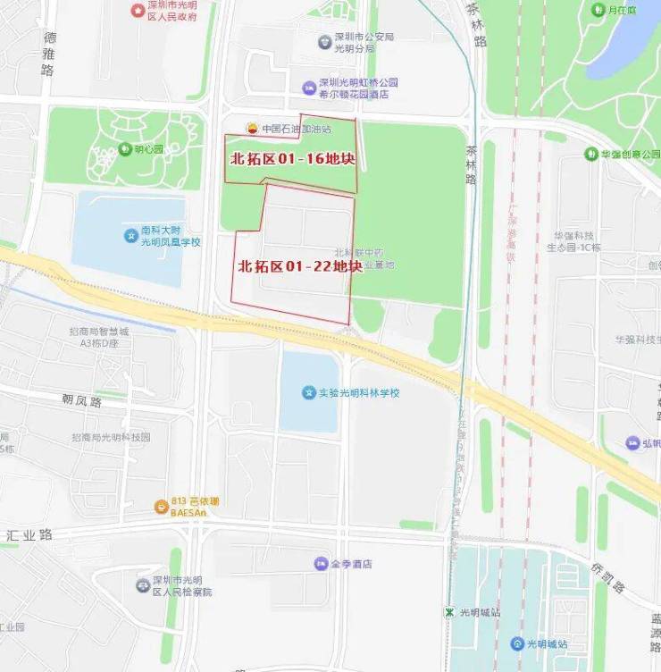北拓区的01-16和01-22地块,在光明区政府附近,与南科大附属光明凤凰学校一路之隔。