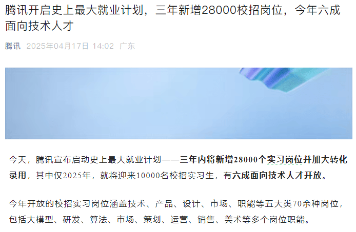 腾讯启动史上最大就业计划!网友:这下子“企鹅岛”不缺人了