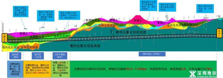 而上屋北站~风井A区间,是13号线二期(北延)工程中地层最复杂,施工难度最大的隧道,隧道全长1088米,穿越地层复杂多变,掘进过程中要面对上软下硬地层、142m孤石粒径在0.5-7.8m大小的孤石段、以及长达753m114MPa高强度的微风化花岗岩等三类地层。