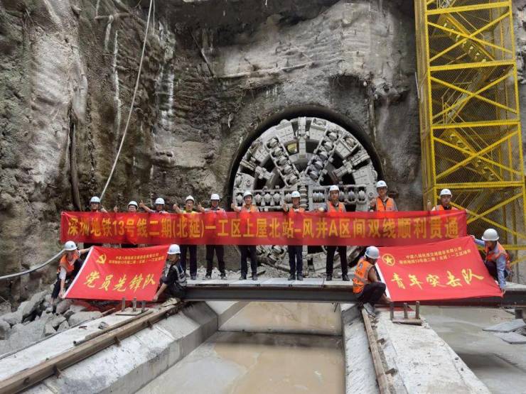 4月24日,伴随着盾构机刀盘旋转的轰鸣声,“攻坚2号”盾构机精准命中圆心,顺利突破掌子面深圳地铁13号线二期(北延)