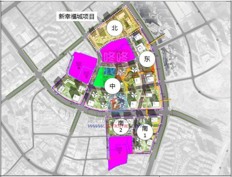 龙华商业中心项目含北、中、东、南一、南二共五个片区,均“名花有主”,各片区的实施主体已确认。