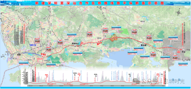 其中,深汕铁路起自深圳枢纽西丽站,经深圳市南山、龙华、福田、罗湖、龙岗、坪山,惠州市大亚湾、惠阳、惠东至深汕特别合作区,终至深汕特别合作区深汕站。