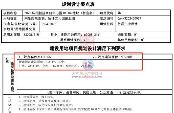 宗地号T504-0075,土地位置南山区西丽街道,土地用途普通工业用地,土地面积63008.31平方米,建筑面积97930平方米,挂牌起始价8610万元,土地使用年限30年。