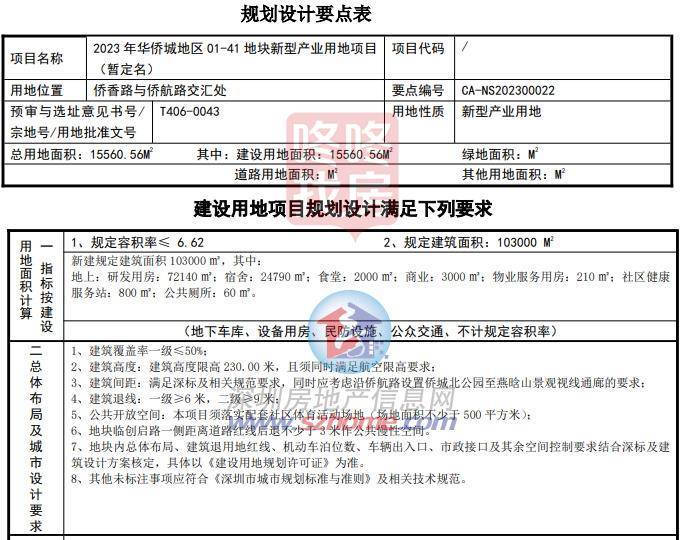 宗地号T406-0043,土地位置南山区沙河街道,土地用途新型产业用地,土地面积15560.56平方米,建筑面积103000平方米,挂牌起始价34600万元,土地使用年限30年。