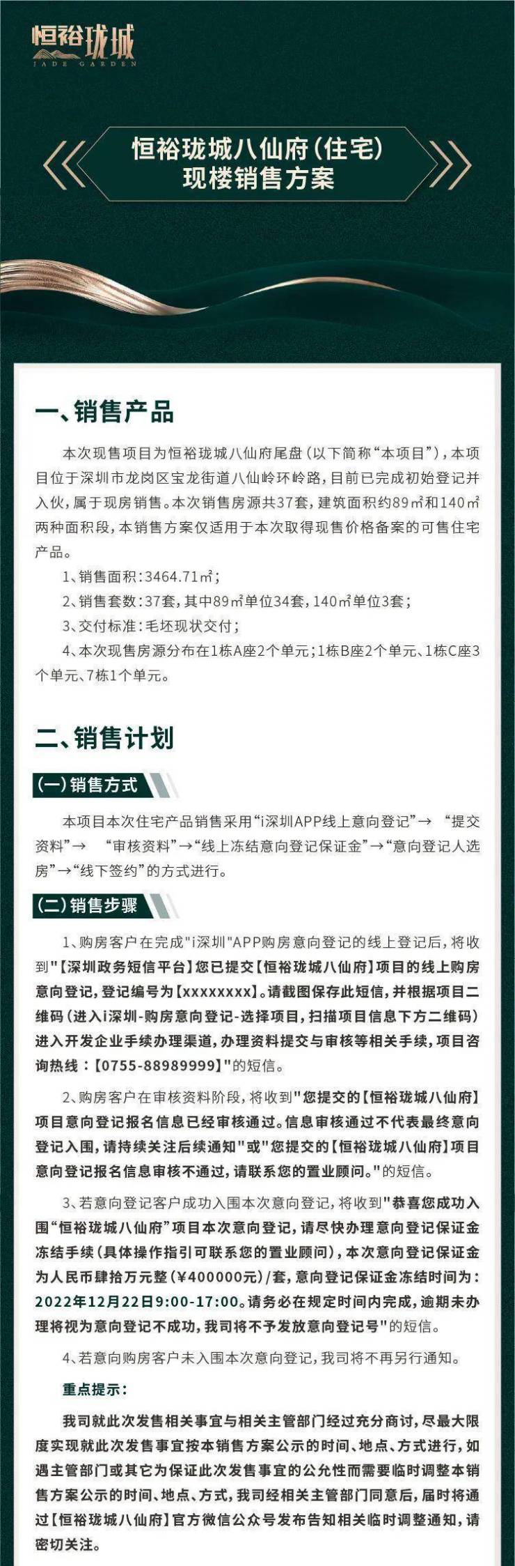 龙岗中心区恒裕珑城,37套现房尾盘开卖!登记启动