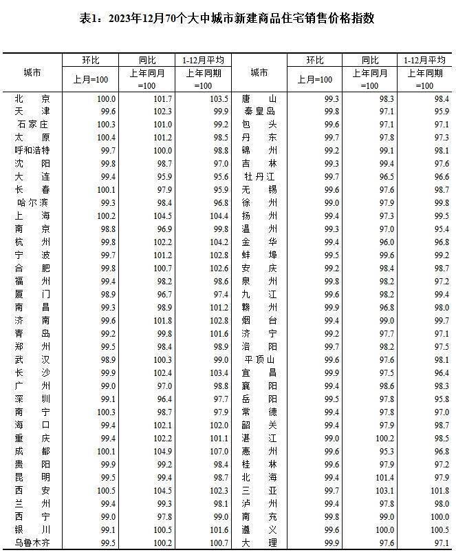 1月17日,国家统计局发布2023年12月份70个大中城市商品住宅销售价格变动情况。2023年12月份,70个大中城市中,各线城市商品住宅销售价格环比下降,同比有涨有降。