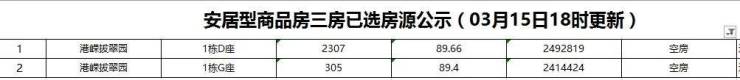 而截止至3月17日18时,这162套房源还剩余2套三房、48套两房空房,并且这批被选剩的两房及三房,均是港嵘拔翠园项目。