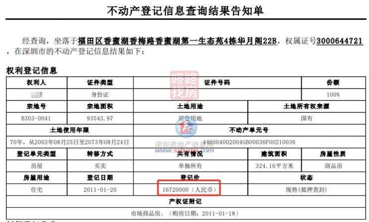 据不动产登记信息显示,该房产原业主为汪X,该房产于2011年以1672万元购入,当时的购买价折合单价约5.16万一平。