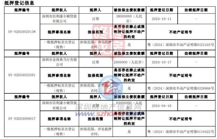 公告披露的执行裁定书内容显示,汪X等人因未能清偿深圳市信利康小额贷款有限公司本金及利息等合计逾7100万元的债务,导致该房产被强制拍卖。