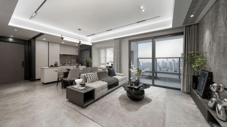 建面约113㎡四房,南向五开间、LDKB一体化设计,约32㎡的横厅直连约6.5米的巨幕阳台,真正做到了让阳光洒入每一个角落。