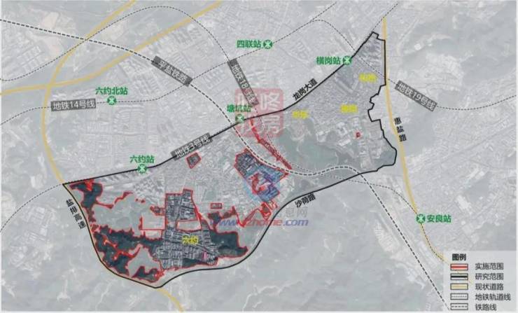 项目位于龙岗区横岗街道,涉及六约、华乐、横岗、松柏社区,是龙岗区第二批平方公里级重点利益统筹项目,实施范围面积1657056㎡。