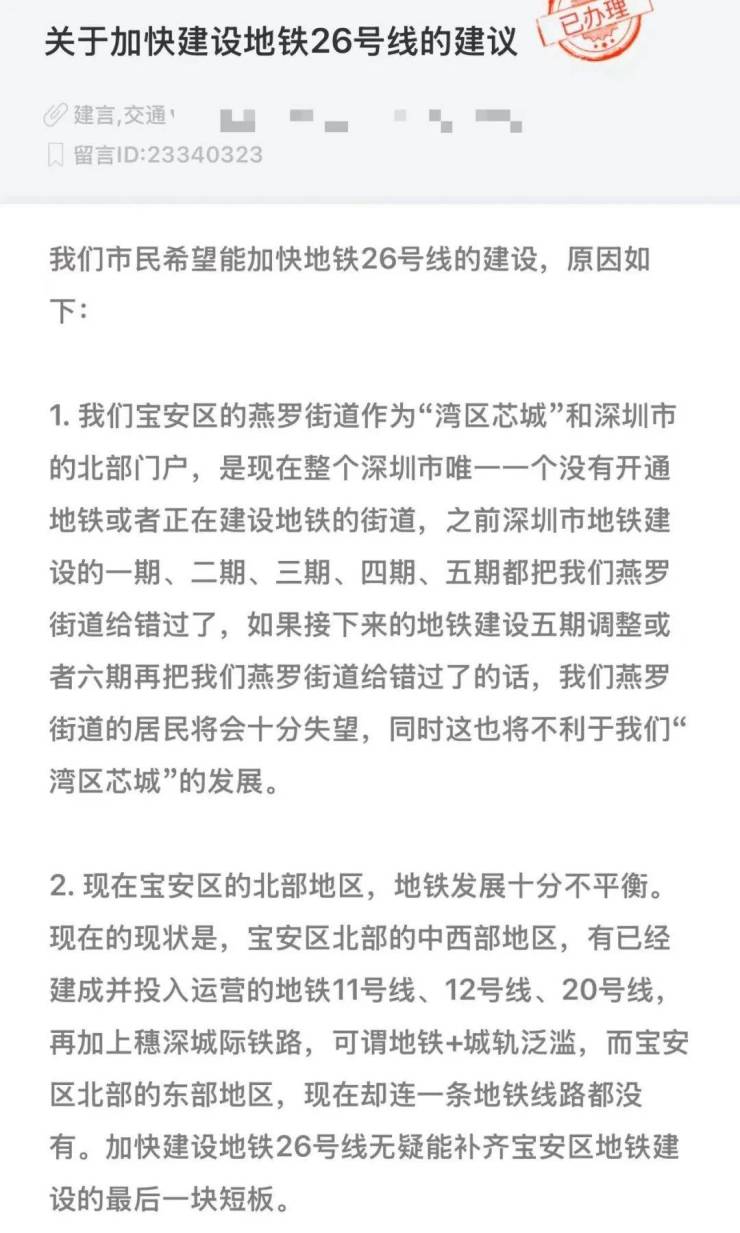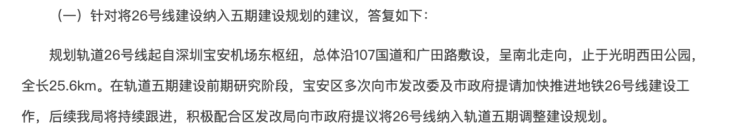 市民反映宝安北部地铁发展不平衡,建议通26号线!官方回应