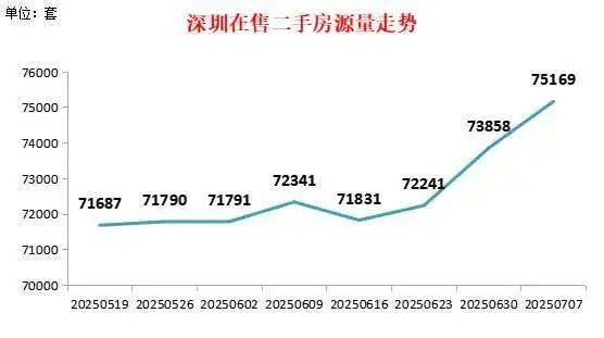 7月首周,深圳二手房挂牌量再创新高,全市共有75169套有效二手房源在售,较上周增加了1311套。