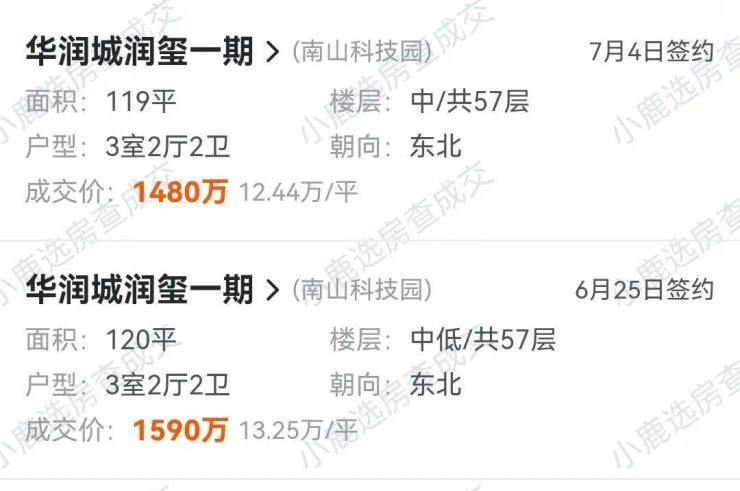 像知名网红盘润城润玺,上半年成交了104套二手房,据第三方小程序显示,小区部分户型最新成交单价仅12-13万+/㎡,跌回了开盘时的价格。