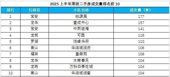 卖得最好的依旧是深圳规模最大的小区桃源居,上半年成交了177套。