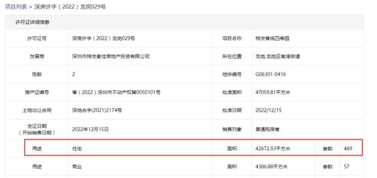 特发香阅四季园已获批预售许可证,共备案289套商品住房和180套安居型商品房。