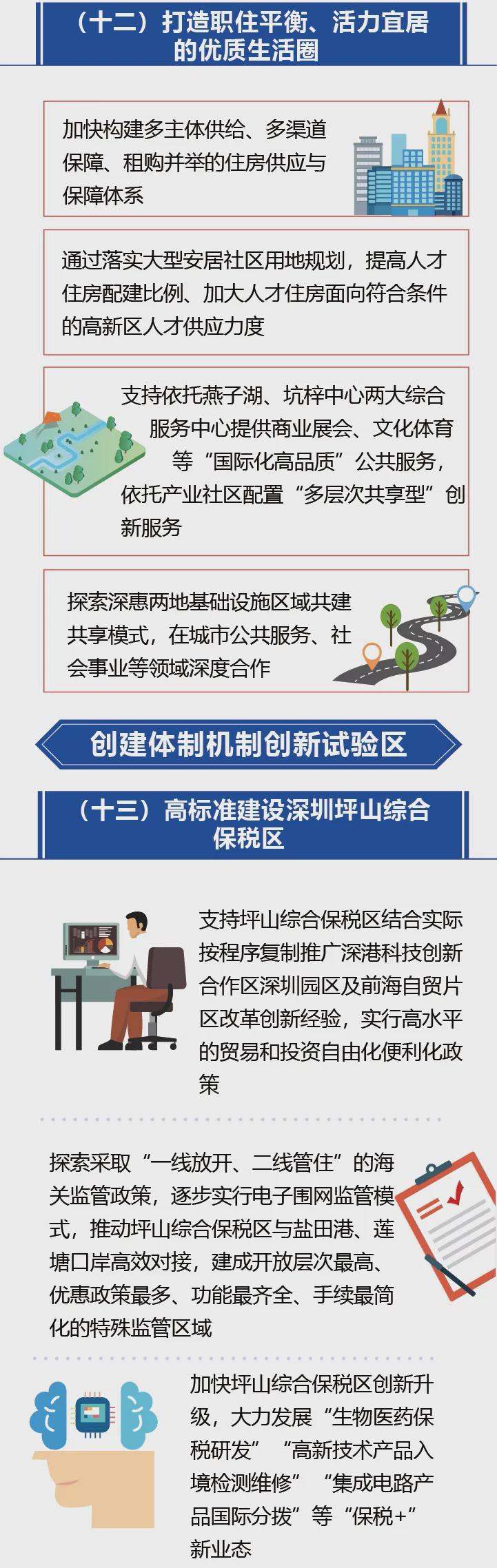 三是高标准建设高级现代化产城融合示范区。坪山高新区的基底是当初建立的深圳大工业区,加快将坪山高新区建设成为世界一流的高科技园区不仅要发展高科技产业,更重要的是要贯彻“以产促城、以城兴产”的产城融合理念,在土地供应、空间规划、教育、医疗、交通、住房配套等各方面予以保障,实现各资源要素的协调发展,吸引更多的高科技企业、高科技项目、高科技人才到坪山高新区集聚发展。《意见》从加强规划引领约束、提升城区配套及治理能力、创新土地高效开发、加快综合交通路网规划、打造职住平衡、活力宜居的生活圈等方面提出了具体举措。
