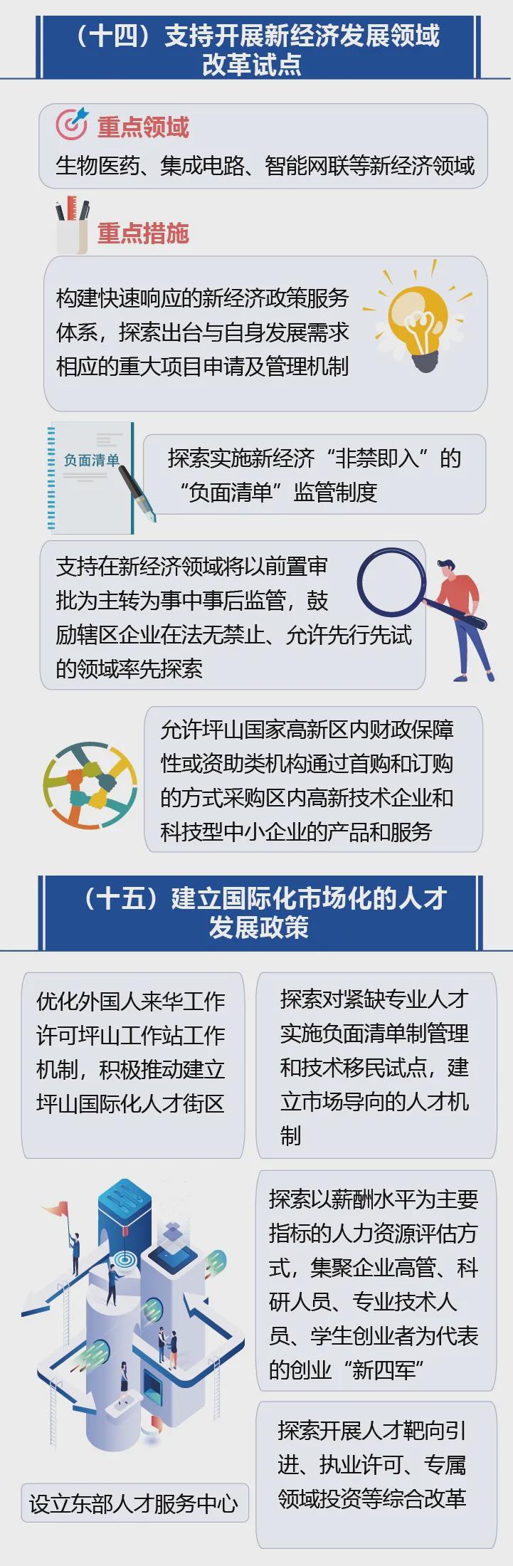 四是创建体制机制创新试验区。坪山高新区作为深圳国家区扩区方案的“两核”之一,要充分借助深圳建设粤港澳大湾区核心引擎城市和中国特色社会主义先行示范区的契机,探索构建接轨国际的先进制度体系。《意见》提出支持坪山保税区复制推广河套、前海等区域的改革创新经验和先行政策,在海关监管、“保税+”新业态等方面优化治理模式;在生物医药、集成电路、智能网联等新经济领域开展改革试探,探索出台与自身发展需求相适应的项目申请、监管制度;同时要建立国际化、市场化的人才发展政策,对外优化外籍高端人才、紧缺专业人才服务机制,吸引更多的境外专业人员到高新区落地发展,对内集聚一批企业高管、科研人员、专业技术人员、大学生创业者等优秀人才。