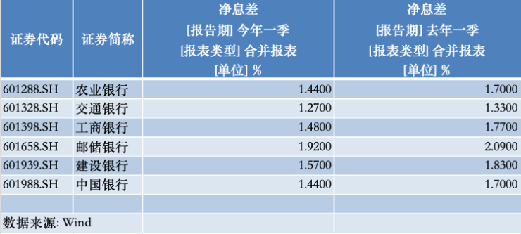 从国有大行情况看,六大行净息差同比全部下降,其中,工商银行下降近0.3个百分点。