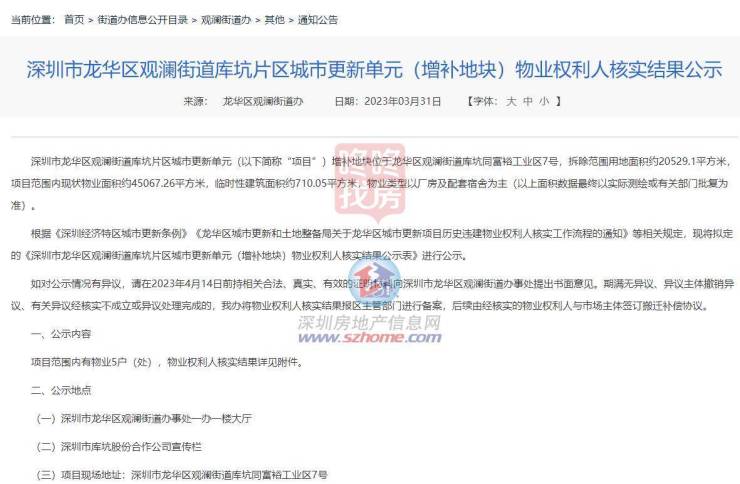 龙华又一超大旧改公示,拟拆49.5万平!更新方向为工业、居住等