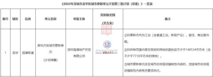 3月30日,2023年深圳市龙华区城市更新单元计划第三批计划(草案)公示。