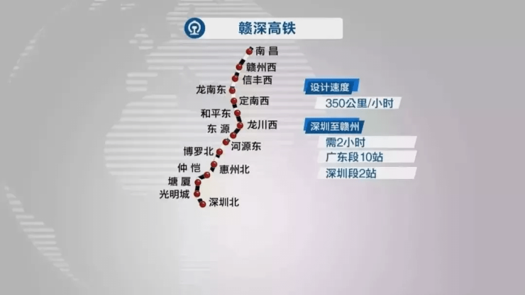 赣深高速铁路于2021年12月18日开通投入使用。深圳至赣州时间将由现在的接近7小时压缩到2小时,河源到深圳时间也将压缩到1小时以内。