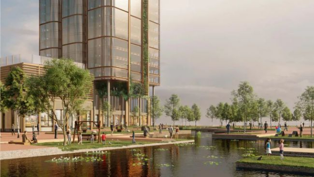 以后的尖岗山将是绿色生态环绕、滨水诗意萦绕、现代建筑风貌、高端产业效能的宜居宜业产业新城。