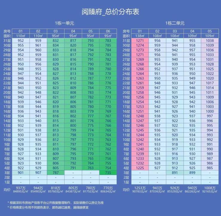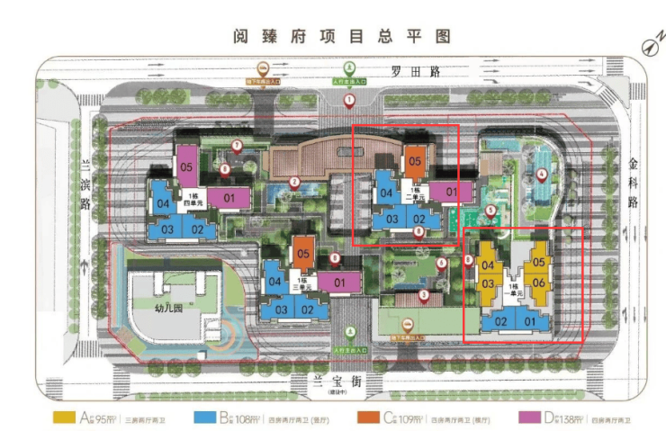 阅臻府首批推出的一单元、二单元,从项目总平面图可以看出,1单元除了05、06户型(东北向)看新安中学外,01、02户型(东南向)可能被新调整的宅地后期建设遮挡视野,03、04户型(西南向)的景观被3单元遮挡;2单元的户型则被4单元及新宅地后期建设遮挡(具体以新宅地最终规划为准)。
