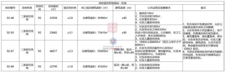 02-48地块用地面积23558㎡,用地性质为二类居住用地,容积率为2.8,总建筑面积65960㎡,配套:邮政所100㎡、文化活动室1000㎡、社区警务室50㎡、社区儿童游戏场地,建筑限高80米。