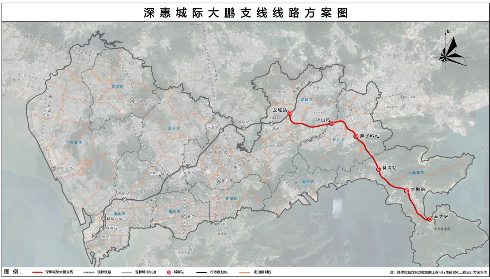 根据《粤港澳大湾区城际铁路建设规划》,深惠城际大鹏支线是大湾区城际铁路网规划的重要组成部分,是一条兼具城际、市域客运及东部旅游快线功能的城际铁路。线路通过与深惠城际、深大城际联通,实现大鹏新区与机场、南山、前海、龙华、龙岗、坪山的快速联系功能。