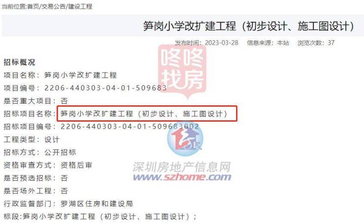 3月28日,笋岗小学改扩建工程(初步设计、施工图设计)招标,招标部分估价419.2681 万元。
