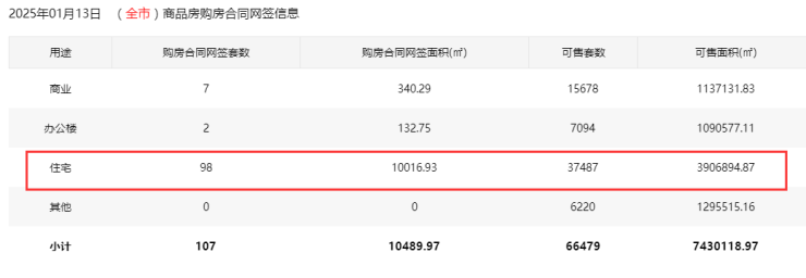 2025年1月13日新房购房合同网签98套。其中,宝安21套;福田1套;龙岗12套;罗湖4套;南山1套;盐田2套;龙华47套;坪山6套;光明4套;大鹏0套;深汕0套。