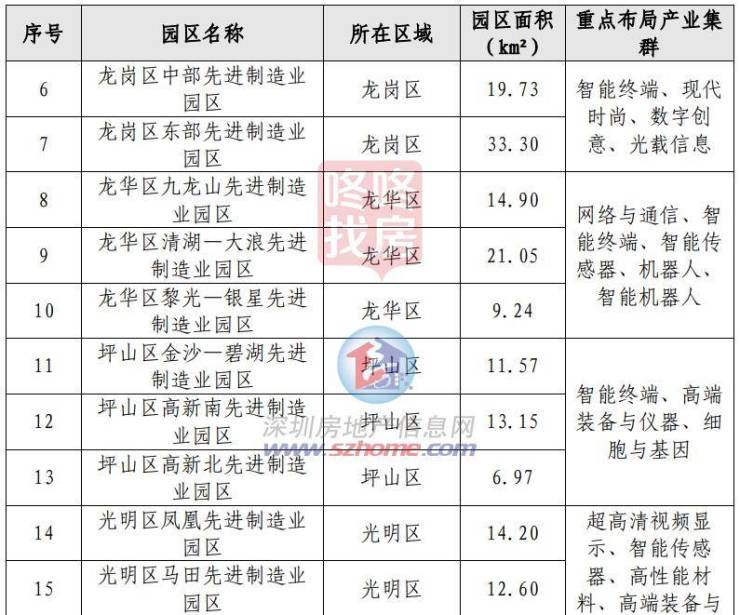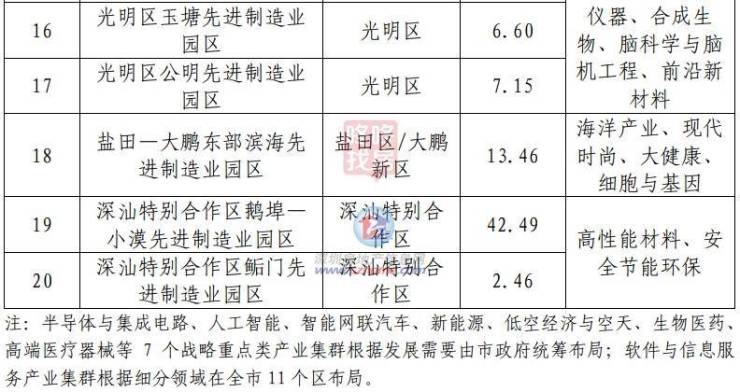 深化先进制造业园区布局,在宝安、龙岗、龙华、坪山、光明、盐田、大鹏新区、深汕合作区等8个区布局20个先进制造业园区,引导战略性新兴产业与未来产业制造环节集中布局,总用地面积约333 平方公里。