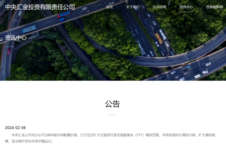 2月6日,中央汇金公司发布公告: