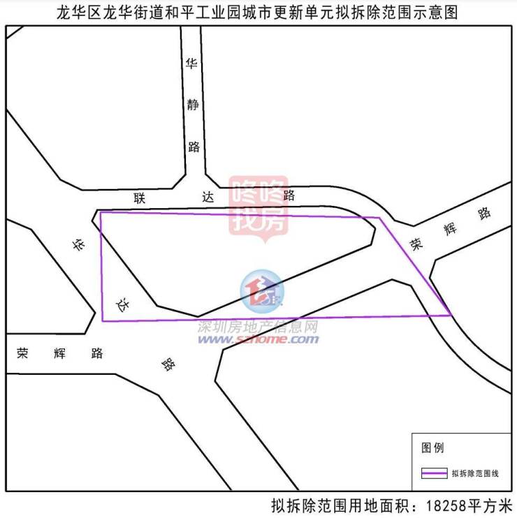 和平工业园城市更新单元位于龙华龙华街道,申报主体深圳市龙华经济发展有限公司,拟拆除范围18258平方米。