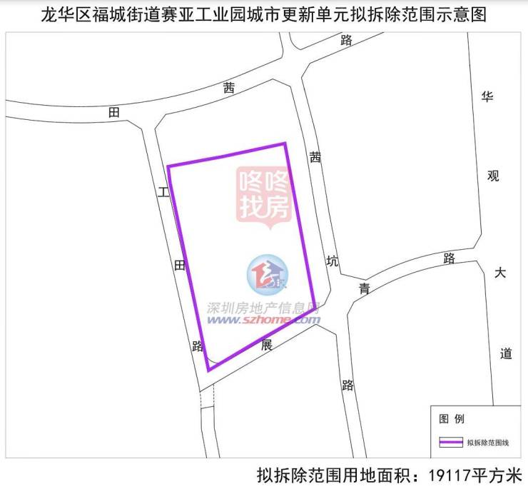 赛亚工业园城市更新单元位于龙华福城街道,申报主体深圳市赛亚气雾剂有限公司,拟拆除范围19117平方米。