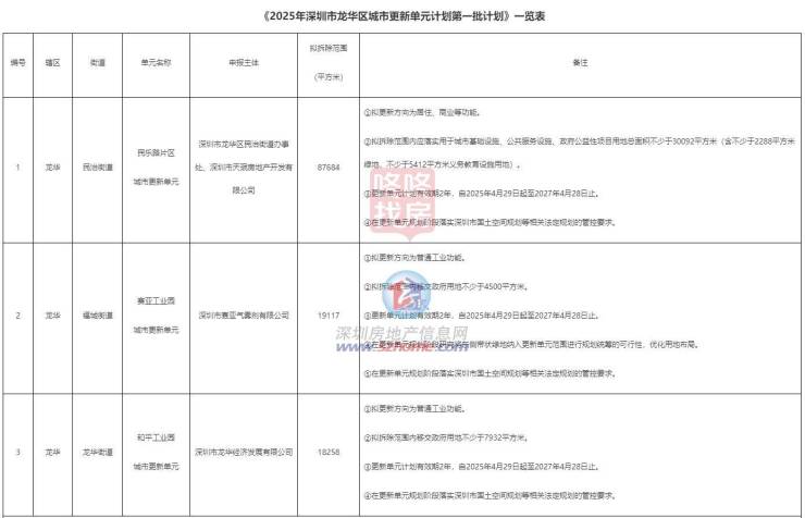 近日,龙华区城市更新和土地整备局公布《2025年深圳市龙华区城市更新单元计划第一批计划》。