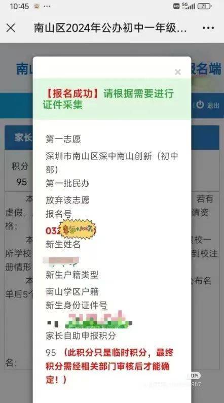 而在6月份有业主在网上晒出了深中南山创新(初中部)报名成功的截图。据项目方爆料,还有小区业主提前一年购房,也申请上了该校的学位。