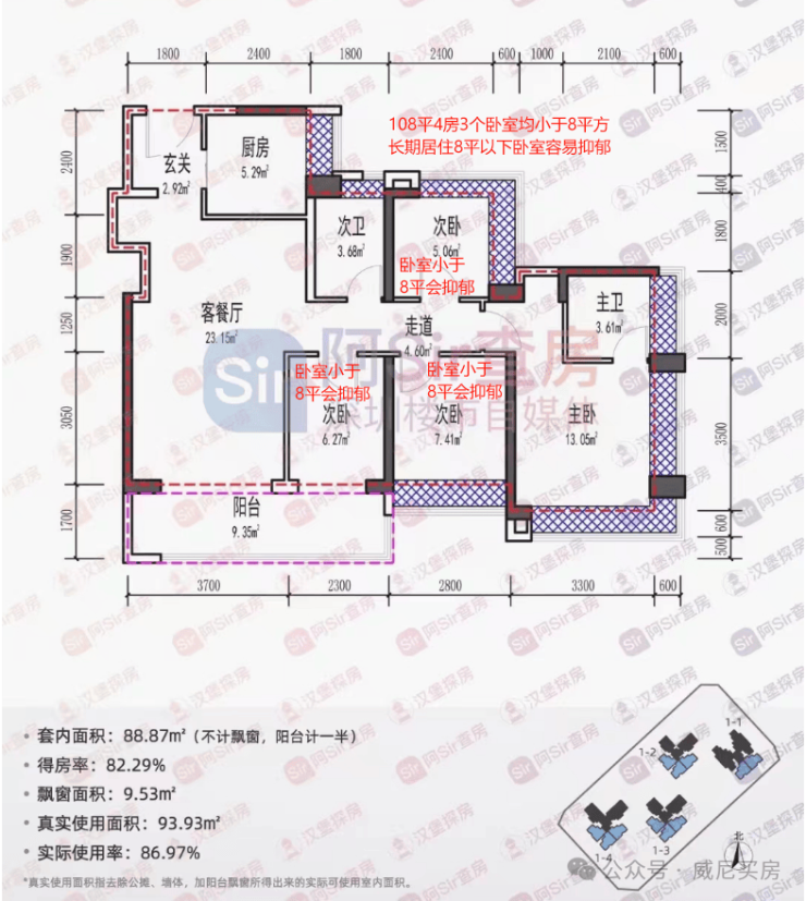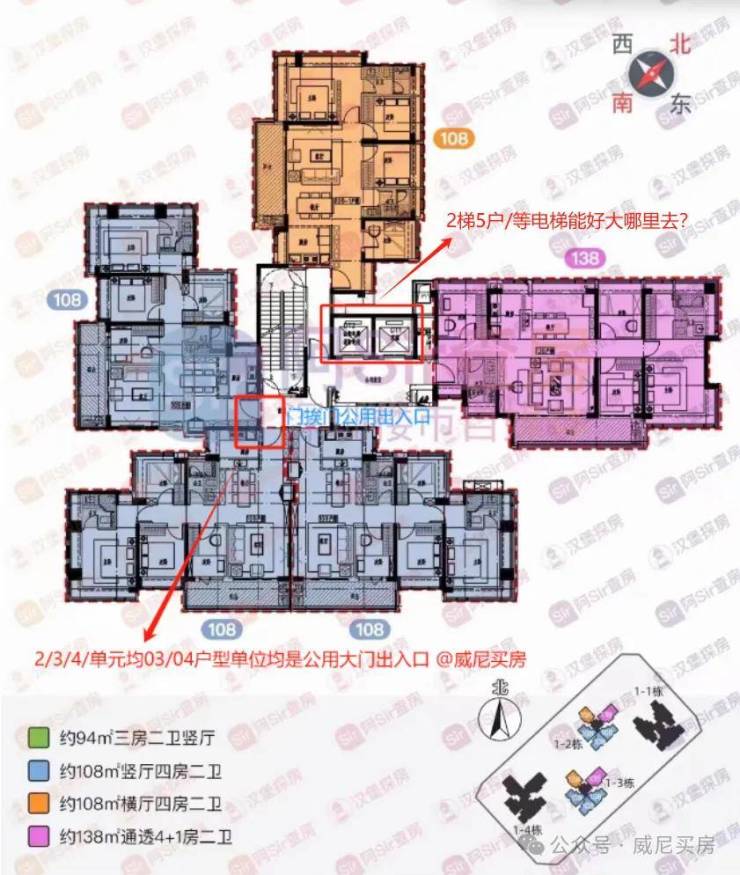 更重要的是,将可能严重影响后期在二手房市场的溢价能力。因为该片区内,很多次新房都是2梯4户的梯户比。甚至有2梯3户,2梯2户梯户比的大花园楼盘。