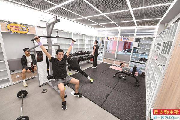 元芬村青年公寓住户在增设的健身房锻炼。