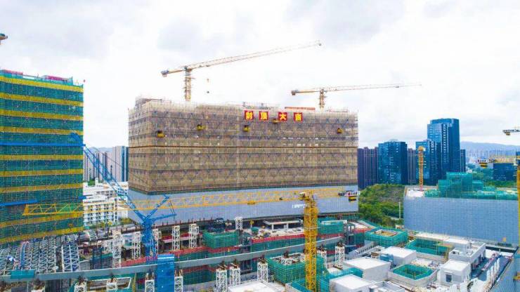 6月20日,在香港中文大学(深圳)医院(原吉华医院)项目施工现场,主建筑楼上“封顶大吉”的标语格外醒目,施工正在有序推进。
