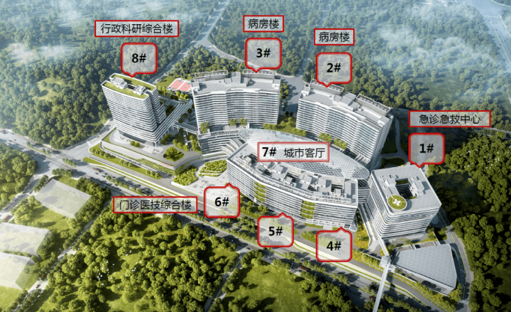 该院选址于龙岗区坂田街道吉华路南侧,于2019年12月开工,主要建设内容为:危急重症和创伤医学中心、医技及住院楼、妇儿中心、门诊中心、转化医学中心、城市客厅和教学科研行政楼,是一所集医疗、教学、科研、预防保健、康复于一体的三级甲等综合医院。