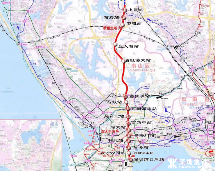 该线路分为两期开发,其中一期分为南段(深圳湾口岸-高新中),北段(高新中-上屋);二期则是从上屋始发,一直到公明北。