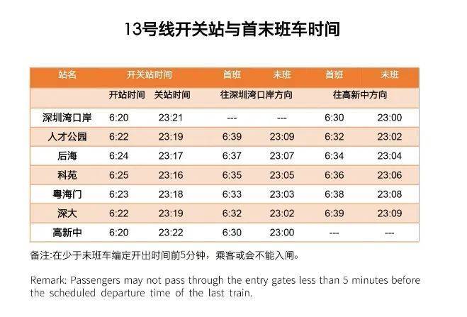 近日,@港铁深圳 公布了13号线一期南段的时刻表。