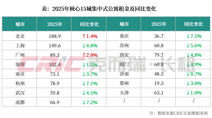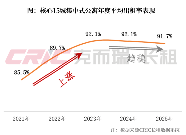 2025年,中国住房租赁市场供需优化、政策加持,“量稳质升”。个人房源“以价换量”,租金承压;集中式公寓扩容,保租房成核心城市供应主力,双轨格局明晰。租金下行而出租率稳定,凸显专业化租赁产品认可度提升。