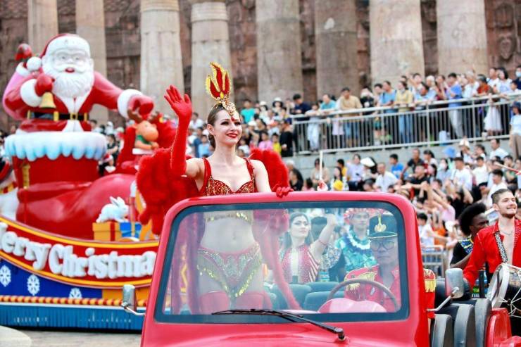 激情澎湃共庆双节,环球舞台将上演3.0升级版狂欢大巡游,集结各国演艺精粹,大型花车震撼出场,五大洲演员们盛装出行,与游客们亲密互动,共享节日欢腾时刻,烈火战龙钢铁机甲彰显力量,巡游队伍气势磅礴,近距离感受舞蹈与歌声的魅力,共同见证五洲同贺的中华盛世景象。
