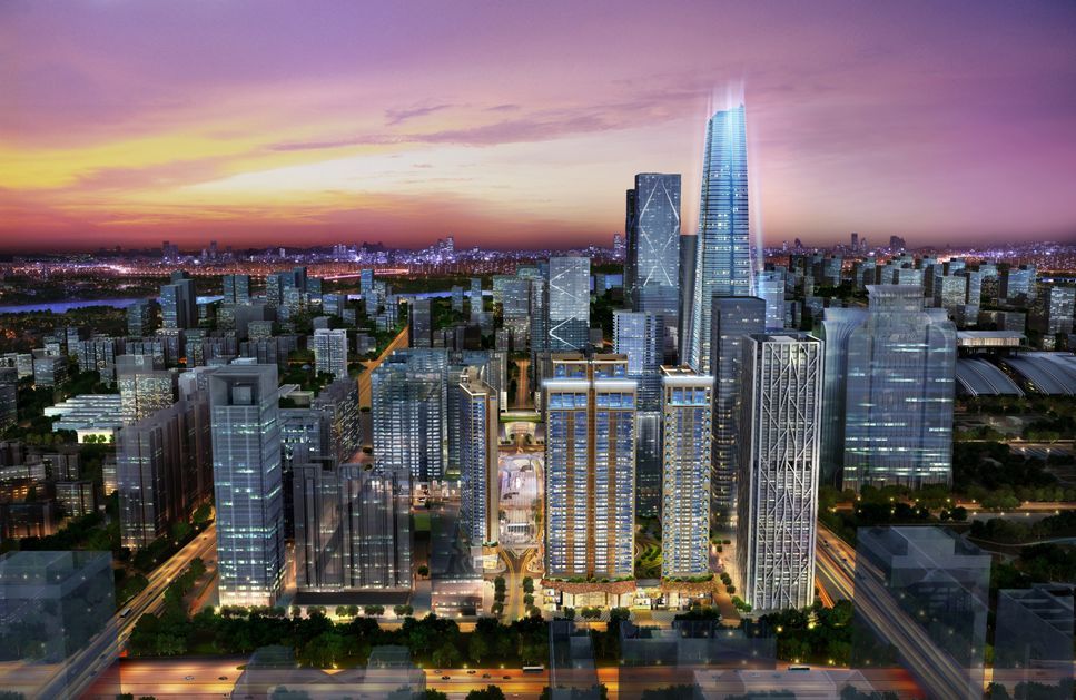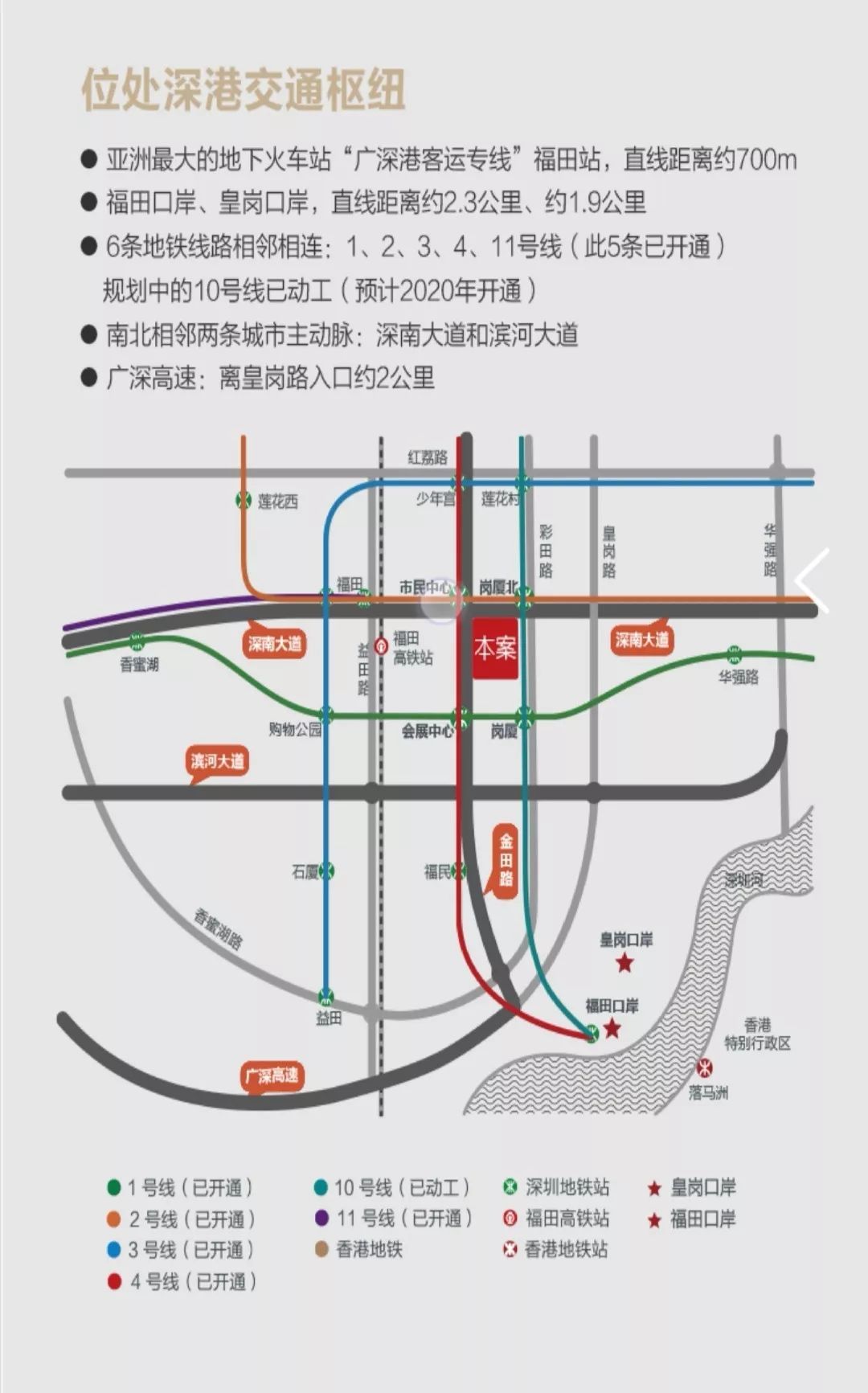 另外,与福田高铁站之间仅有600米步行距离,高铁直通香港西九龙仅需14分钟。而“卓悦中心”直接接驳的岗厦北站,将根据城市规划建成新一代大型综合交通枢纽,汇集地铁(4条线交汇换乘)、公交枢纽、的士站点,成为城市大型地下交通枢纽。
